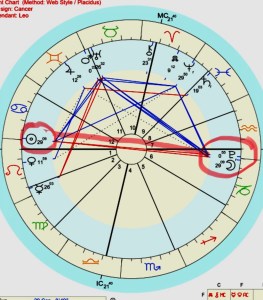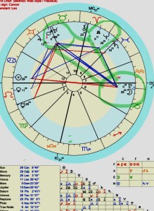 Having said all of that, Neptune forms a sextile to Mars at 0 degrees Gemini conjunct Uranus in Taurus at 26 degrees. This spices things up even more as the assertive life force of the Warrior, being Mars is conjunct Uranus with its sudden movements motivated towards freedom and liberation. At the same time this conjunction of Mars/Uranus is conjunct the Fixed Star Algol at 26 degrees Taurus .