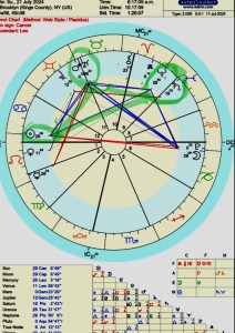 This Capricorn Moon conjuncts Pluto Rx at 0 degrees Aquarius. This adds power and intensity to this culminating moment. The dynamic energy of Pluto intensifies the qualities of the Moon in Capricorn.
